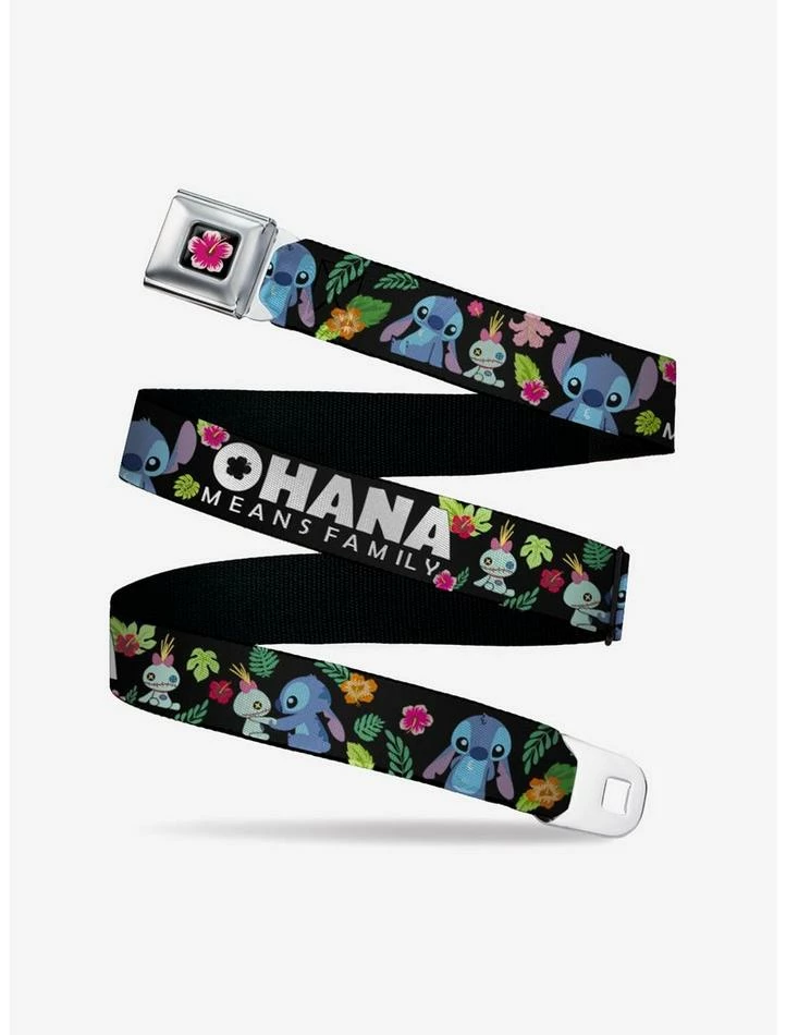 Best Sale ๐ Disney Lilo & Stitch Ohana Means Family Scrump Poses Tropical Flora Seatbelt Belt โ๏ธ