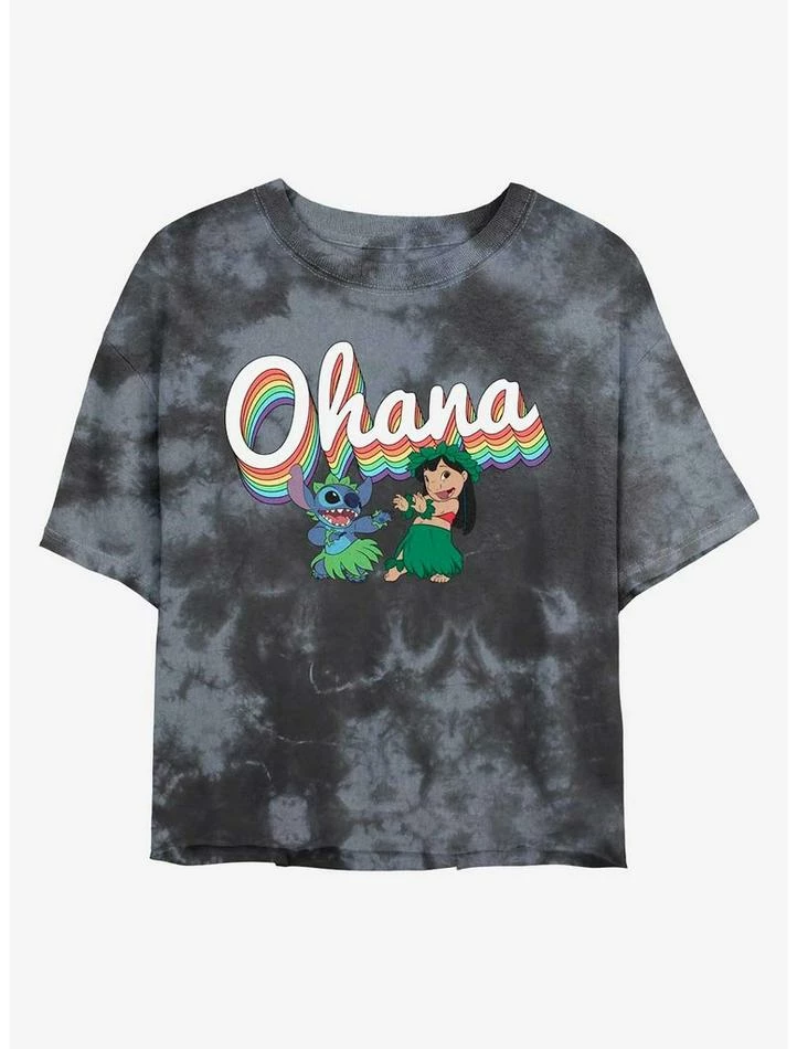 Brand new ๐ Disney Lilo & Stitch Rainbow Ohana Tie-Dye ๐ง Girls Crop T-Shirt ๐