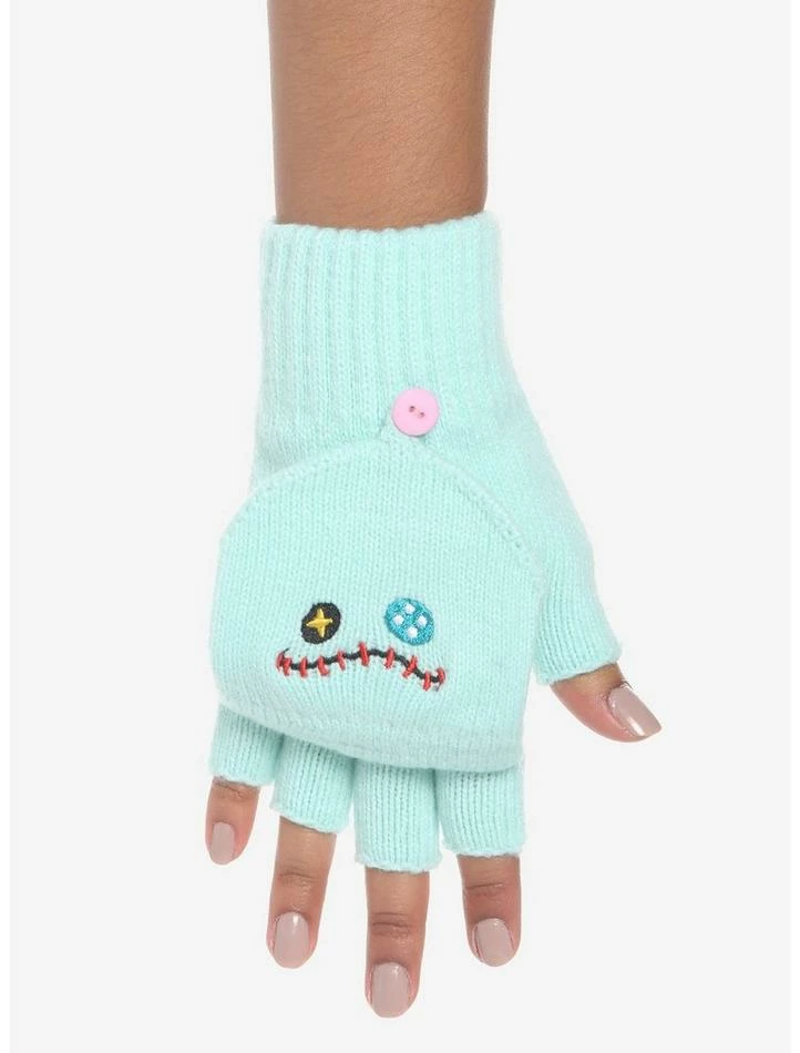 Never go anywhere without Experiment 626 and his pal, Scrump! This pair of glommets have one hand inspired by Stitch and the other hand inspired by Scrump. Simply button the mitten portion back when you need the fingerless glove style!
