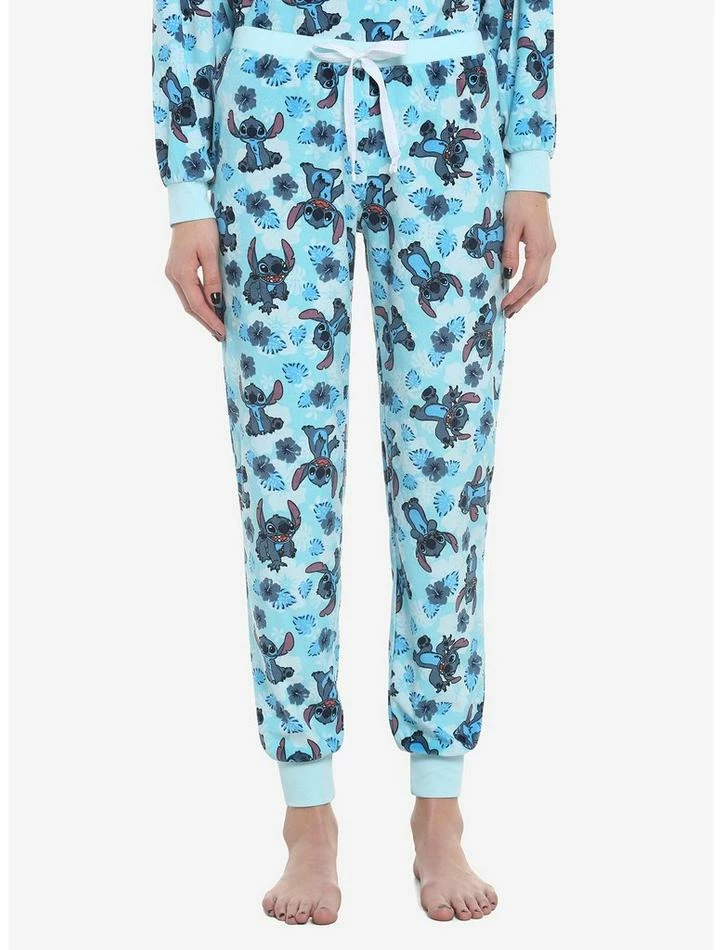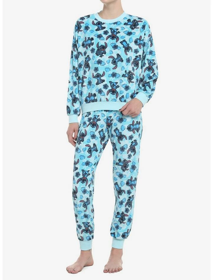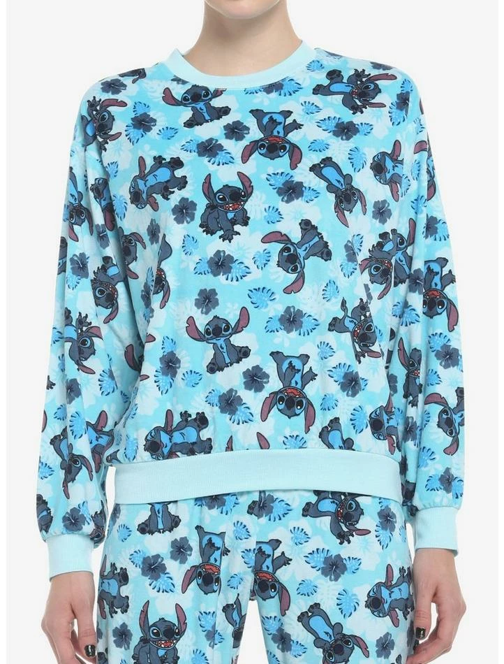 When Stitch is making mischief, he’s lounging in the tropical sun. This brushed velour lounge set can help you unwind thanks to its supersoft fabric, and print of Stitch and tropical foliage.