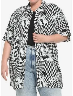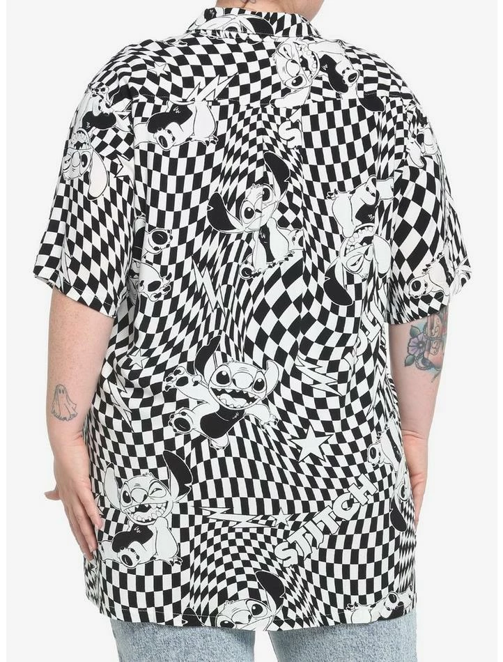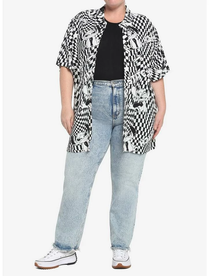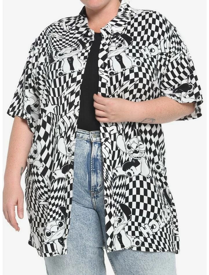Deals ๐ Her Universe Disney Lilo & Stitch Warped Checkered ๐ง Girls Woven Button-Up Plus Size ๐ฏ