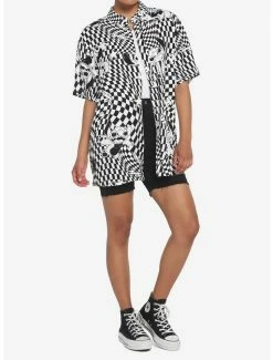 Coupon ❤️ Her Universe Disney Lilo & Stitch Warped Checkered 👧 Girls Woven Button-Up 🎁
